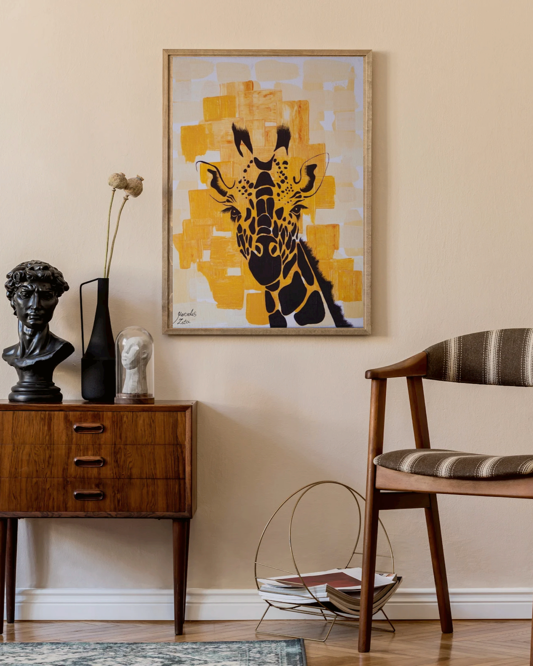 Introducing ‘Graceful Giants Unveiled’ – an exquisite acrylic on canvas capturing the majestic presence of giraffes. This 30×40 cm artwork is a celebration of nature’s elegance and the unique grace embodied by these towering creatures. Elevate your space with this captivating portrayal of wildlife, where every stroke tells a story of strength and serenity.