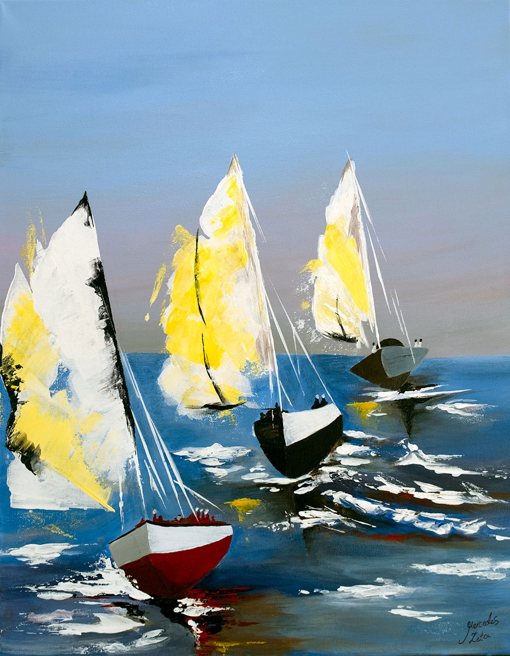 introducing ‘Voyage Serenity Seascape,’ a captivating acrylic painting on canvas that transports you to the open waters. Sized at 40×50 cm, this artwork beautifully depicts three ships gracefully sailing on the sea. Immerse yourself in the tranquil beauty of this maritime masterpiece, where each brushstroke tells a tale of exploration and tranquility.