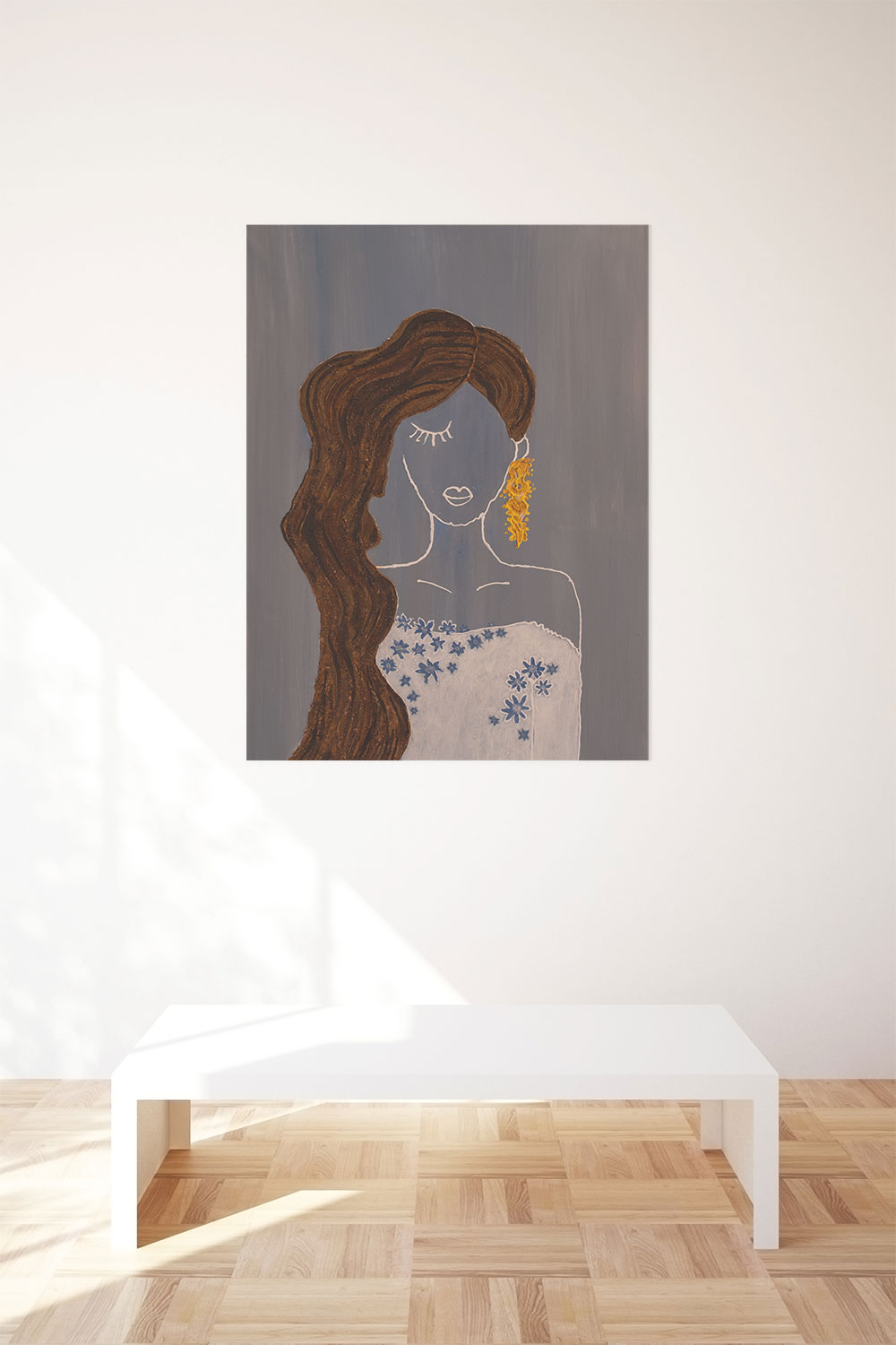 Introducing ‘Whisper in Blue’ a captivating acrylic painting on canvas sized at 60×80 cm. This artwork celebrates the timeless beauty of a girl’s face, capturing the essence of grace and allure. Elevate your space with this stunning portrayal that harmonizes artistic finesse with the captivating charm of ‘Whisper in Blue.